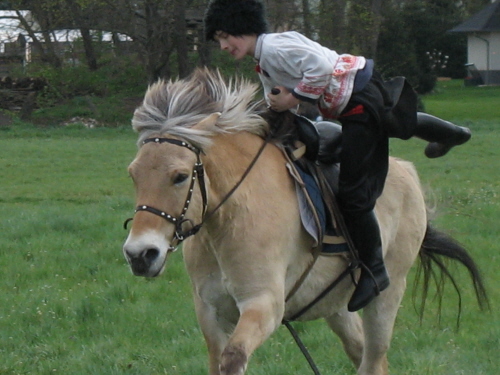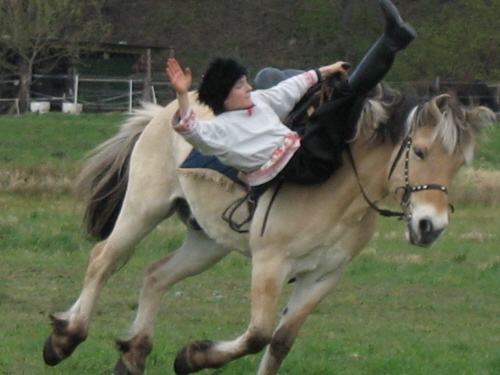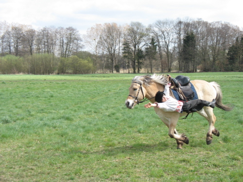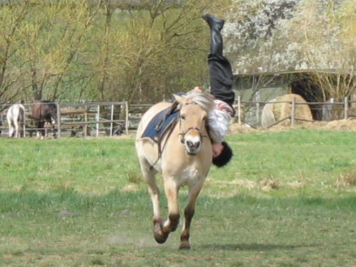 Anton springt im Galopp vom Pferd, Balou mag gar nicht hinschauen...